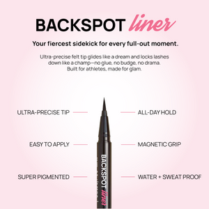 1 Full Out Glam BackSpot Liner Pen — a long-lasting magnetic eyeliner designed to lock your lashes in place with precision, power, and zero glue. Smudge-proof, cheer-tested, and made for on-the-go glam.
